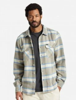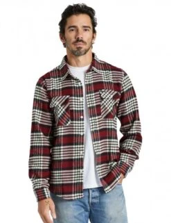Stylish Brixton Bowery Flannel Shirt in Dark Brick for women with long sleeves, dropped shoulders and adjustable sleeve ends, small Brixton logo sewn on the left breast pocket.