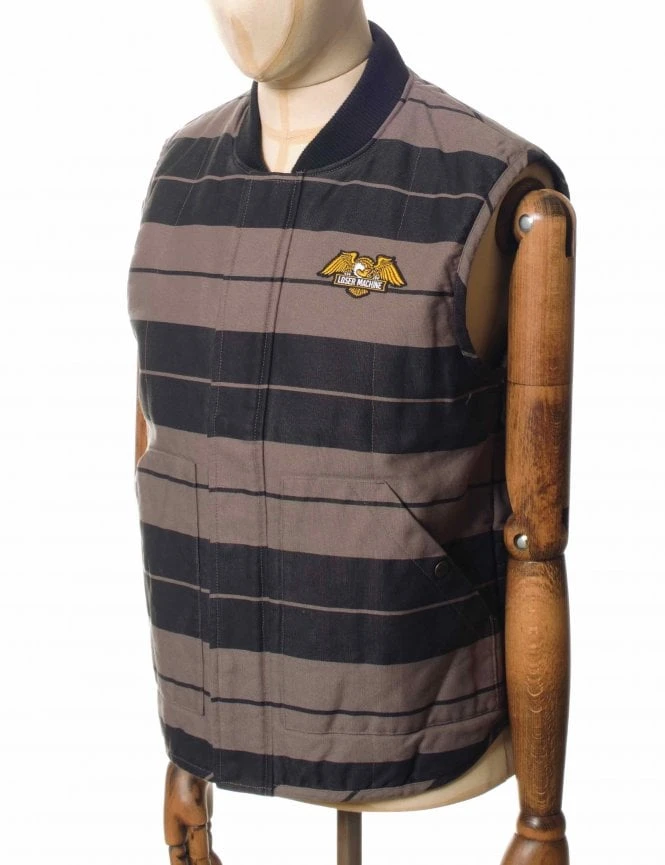 The Condor II Vest in Charcoal/Black from The Loser Machine is the sequel to the popular Condor Vest. It has a classic workplace style, a brand patch on the breast, and a front zipper that runs the length of the garment. The interior features a contrasting lining and a key-holder pocket. A button can be used to seal the outside pockets.