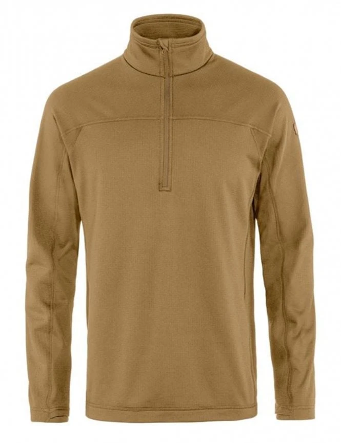 Hey there! Let me tell you about the Fjallraven Abisko Lite Fleece. This stylish and versatile jacket is perfect for the outdoorsy type who wants both warmth and mobility. Made from 100% polyester, the Buckwheat Brown color will surely catch your eye. The funnel neck and half zip provide added protection from the wind and the regular fit makes it comfortable to wear.