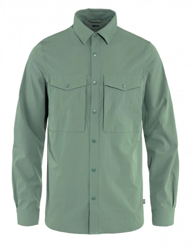 The Fjallraven Abisko Trekking Shirt in Patina Green is the ultimate outdoor adventure companion. Made with a blend of 84% polyester and 16% elastane, this shirt is designed for optimal performance and comfort during long treks and hikes. Featuring buttoned chest pockets and a click-button fastening, you can safely store your essentials without worrying about them falling out. The collared shirt has a regular fit and long sleeves to protect you from the elements. The flag label adds a touch of style to the shirt. Whether you’re going on a weekend camping trip or embarking on a multi-day trek, the Fjallraven Abisko Trekking Shirt is the perfect choice for any outdoor enthusiast.