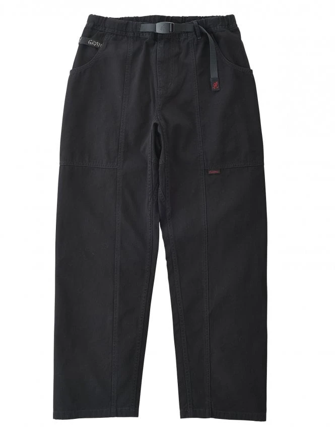 Gramicci Gadget Pant in Black is crafted with organic premium cotton twill and uses a durable canvas fabric for the large pocket portions of the pants. These low-rise, slim-fit urban pants are made from quality soft prewashed cotton designed to promote breathability in a variety of weather conditions. These smart multipurpose casual climbing pants have two large pockets designed to store a variety of tools and are designed to be long-lasting and durable whatever you are doing wearing them.