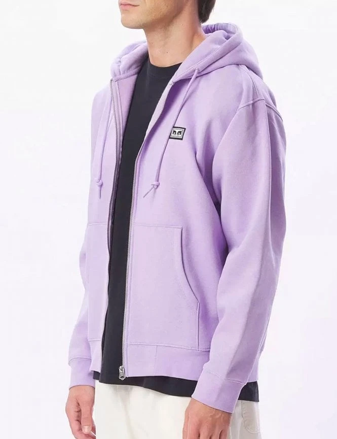 The Obey Established Works Eyes Zip Hood in Digital Lavender is a must-have for any wardrobe. Made from a high-quality blend of 58% cotton and 42% polyester, this hoodie is both comfortable and durable. The zip closure makes it easy to put on and take off, while the drawstring hood adds an extra layer of protection from the elements. The eye-catching Obey Eyes patch on the chest adds a unique touch of style to this hoodie, making it stand out from the rest.